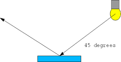 The smoother the surface, the further the incident angle can be from the horizontal. A properly smoothed mirror will reflect a reddened image of the filament of the lamp at an angle of 30 degrees to 45 degrees from the horizontal. If all looks good, we're ready to move on to the polishing process.